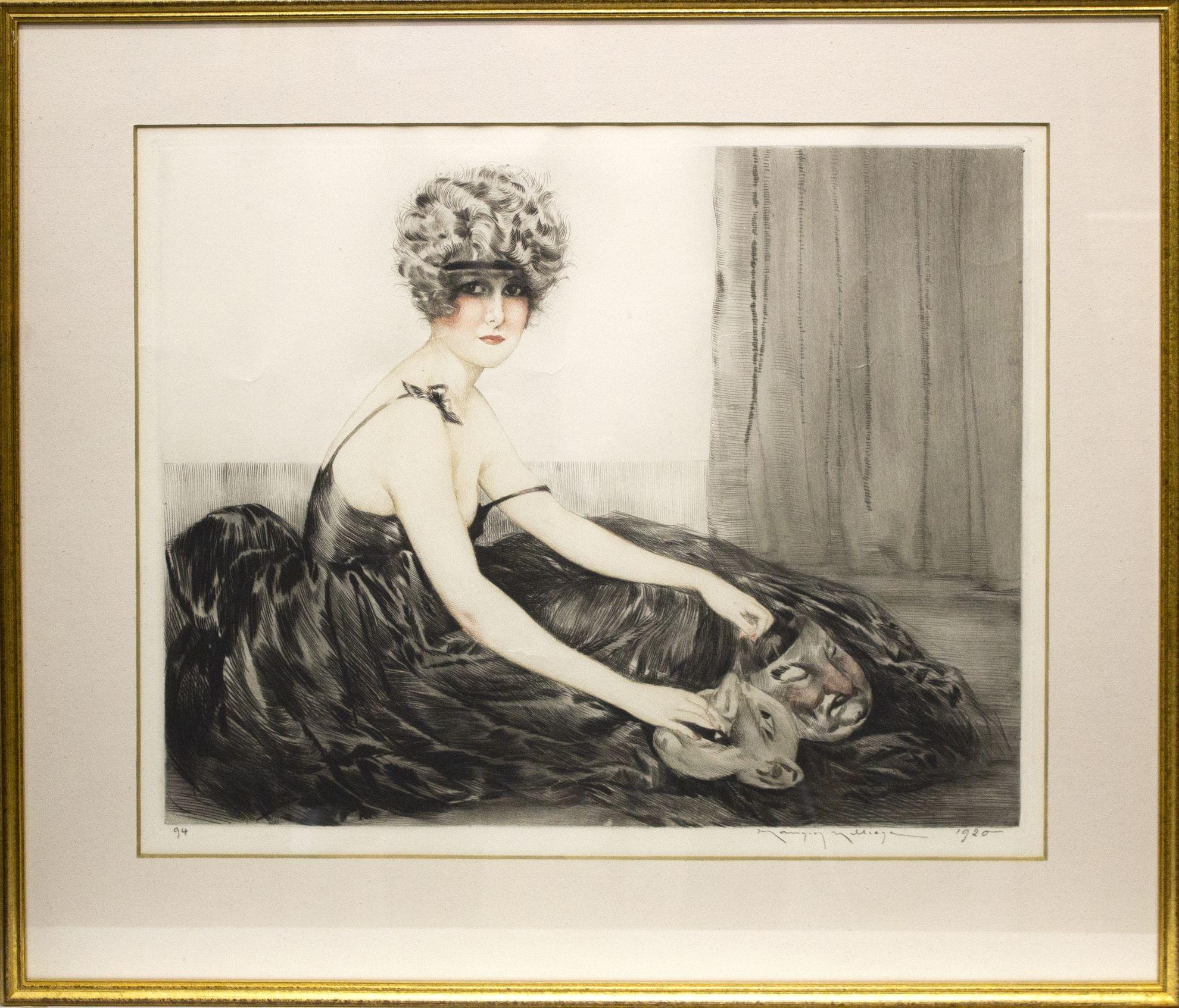 Papier lithographié et rehaussé, piètement en bois tourné, H 59...