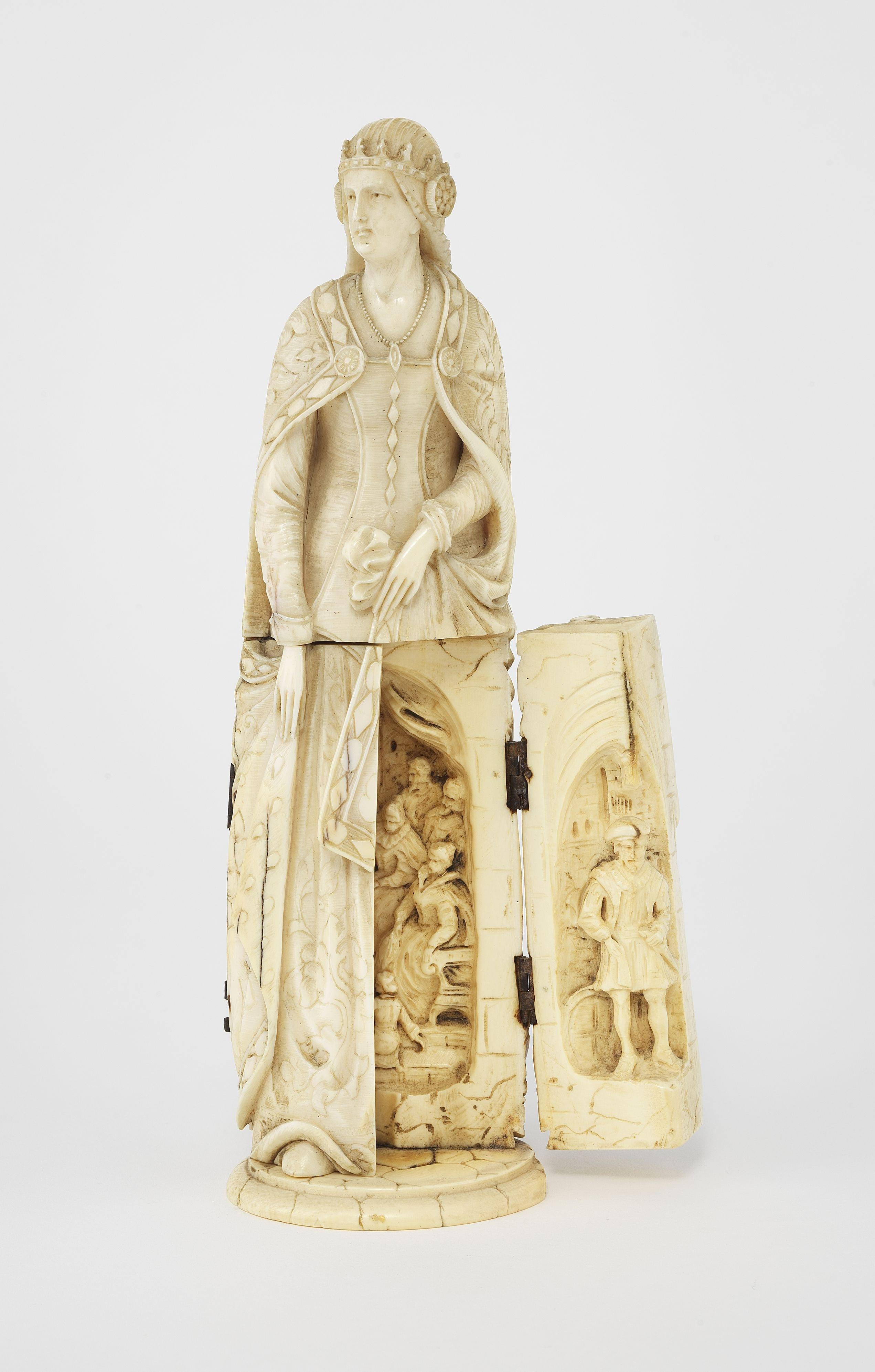 Verre blanc moulé-pressé et opalescent, H 20,5 cm. Modèle créé e...