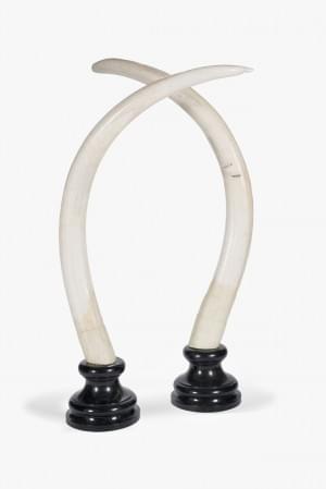 Très belle paire de défenses, longueur: 240 et 230 cm env., poids: 45 et 46,7 kg (99 et 103 livres). Un certificat de mesure délivré par The East African Professional Hunter's Association et daté du 2 avril 1970 accompagne ces défenses