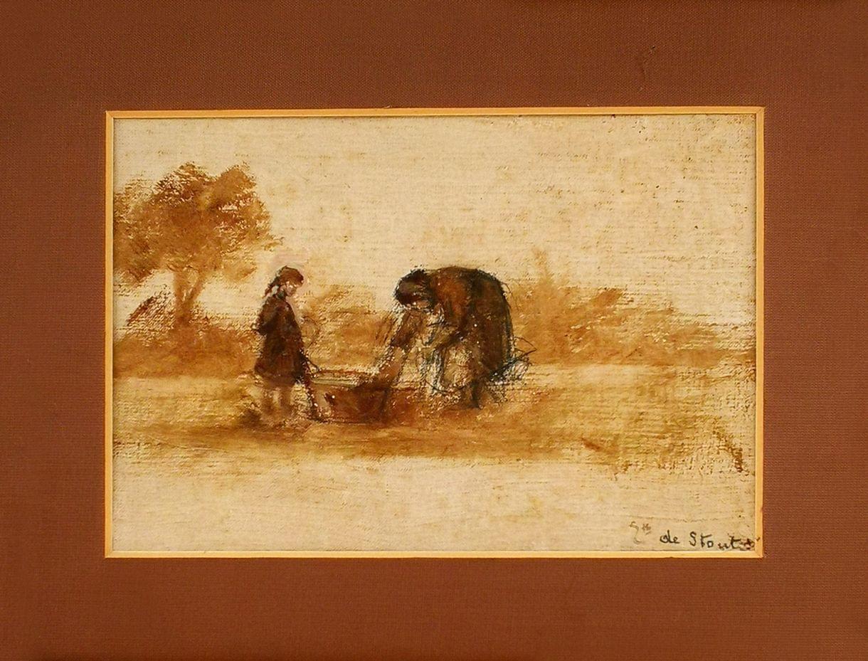 Paysanne, fille aux champs et lavandière, deux huiles sur carton, 12,5x19 cm et 13x17 cm