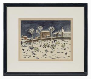 Jardins sous la neige, gouache sur papier, titrée et signée, 25x33 cm