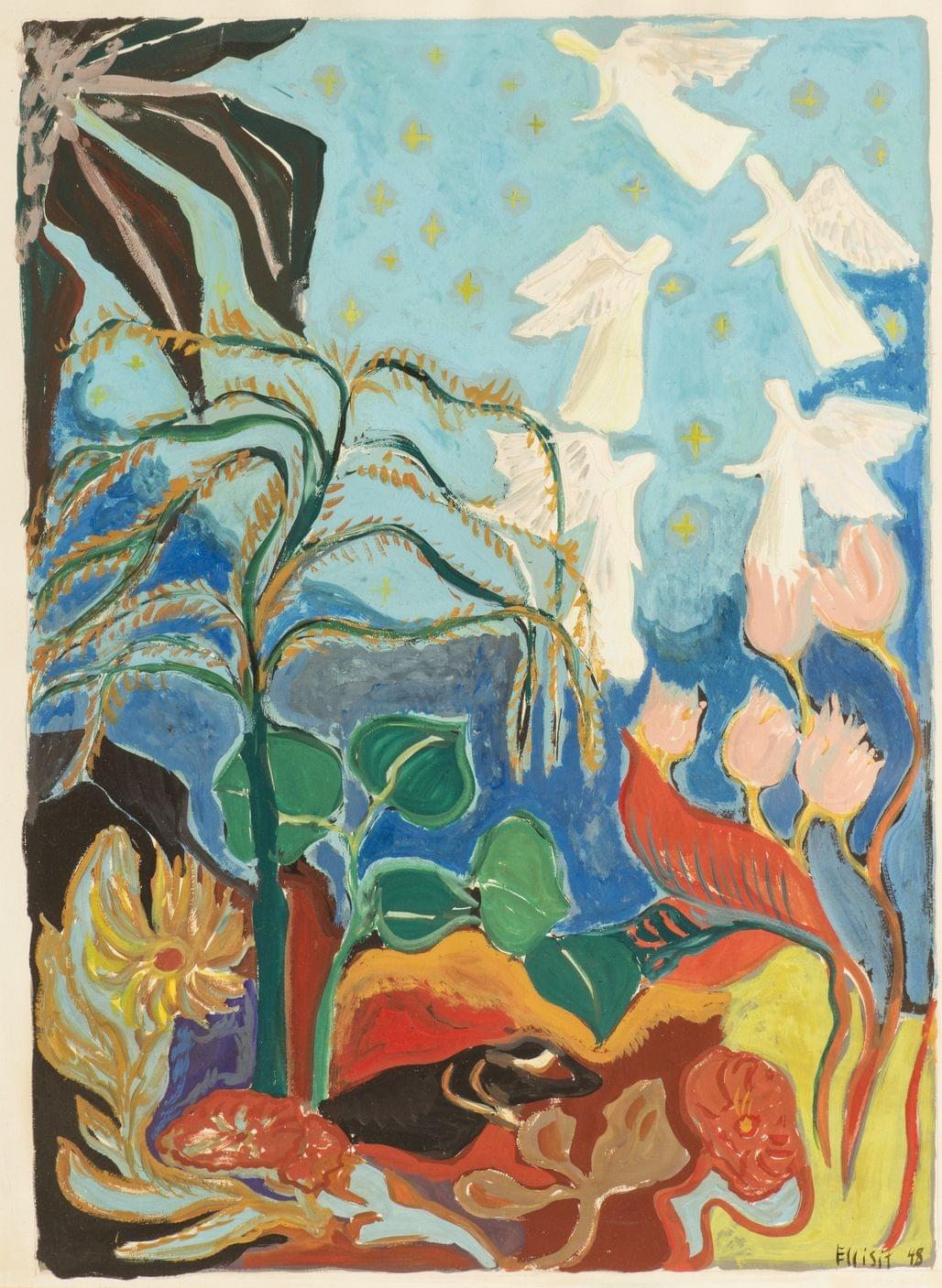 L'échelle de Jacob, gouache sur papier, signée et datée 48, 59x64 cm