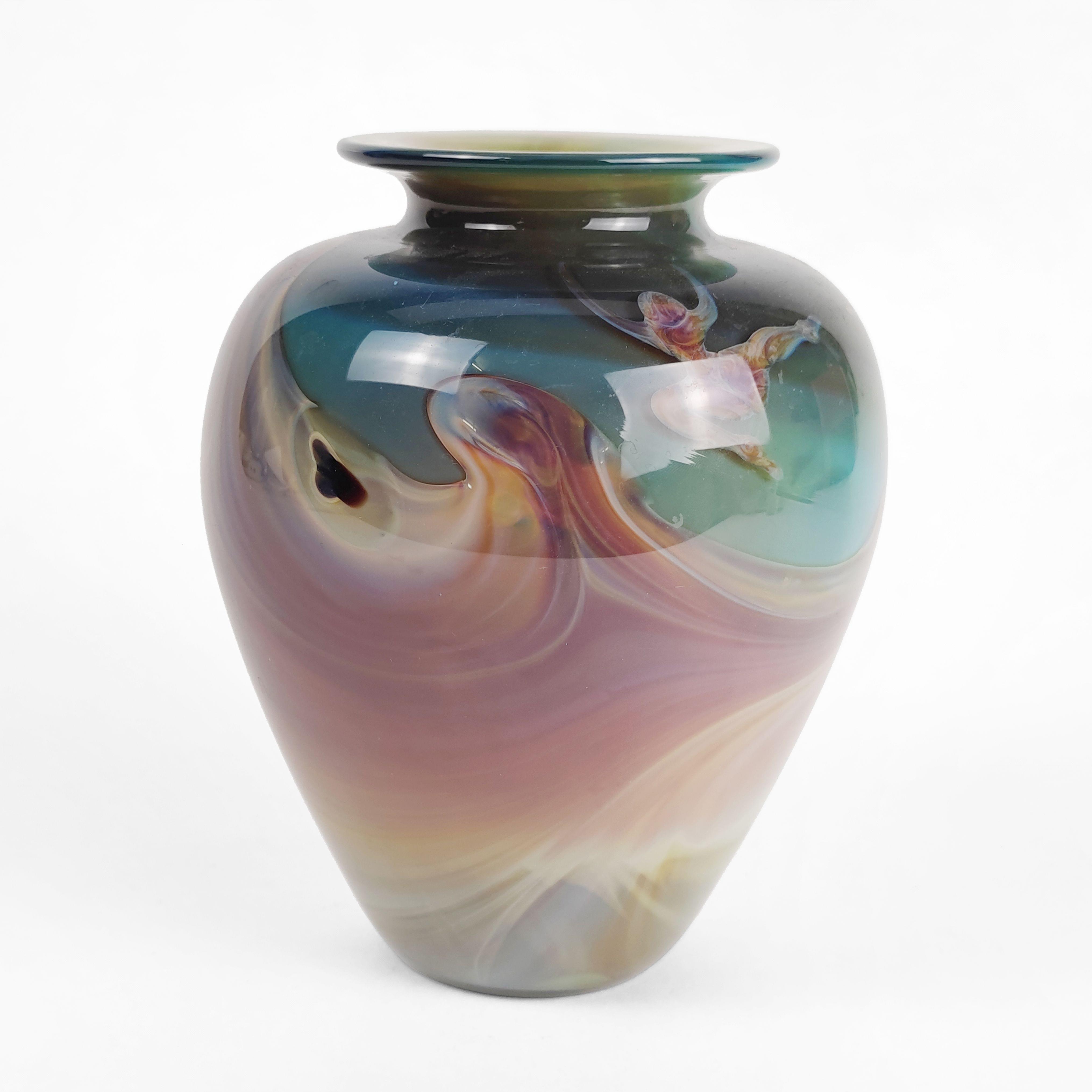 Vase à décor d'équilibristes, verre, signé, H 19 cm