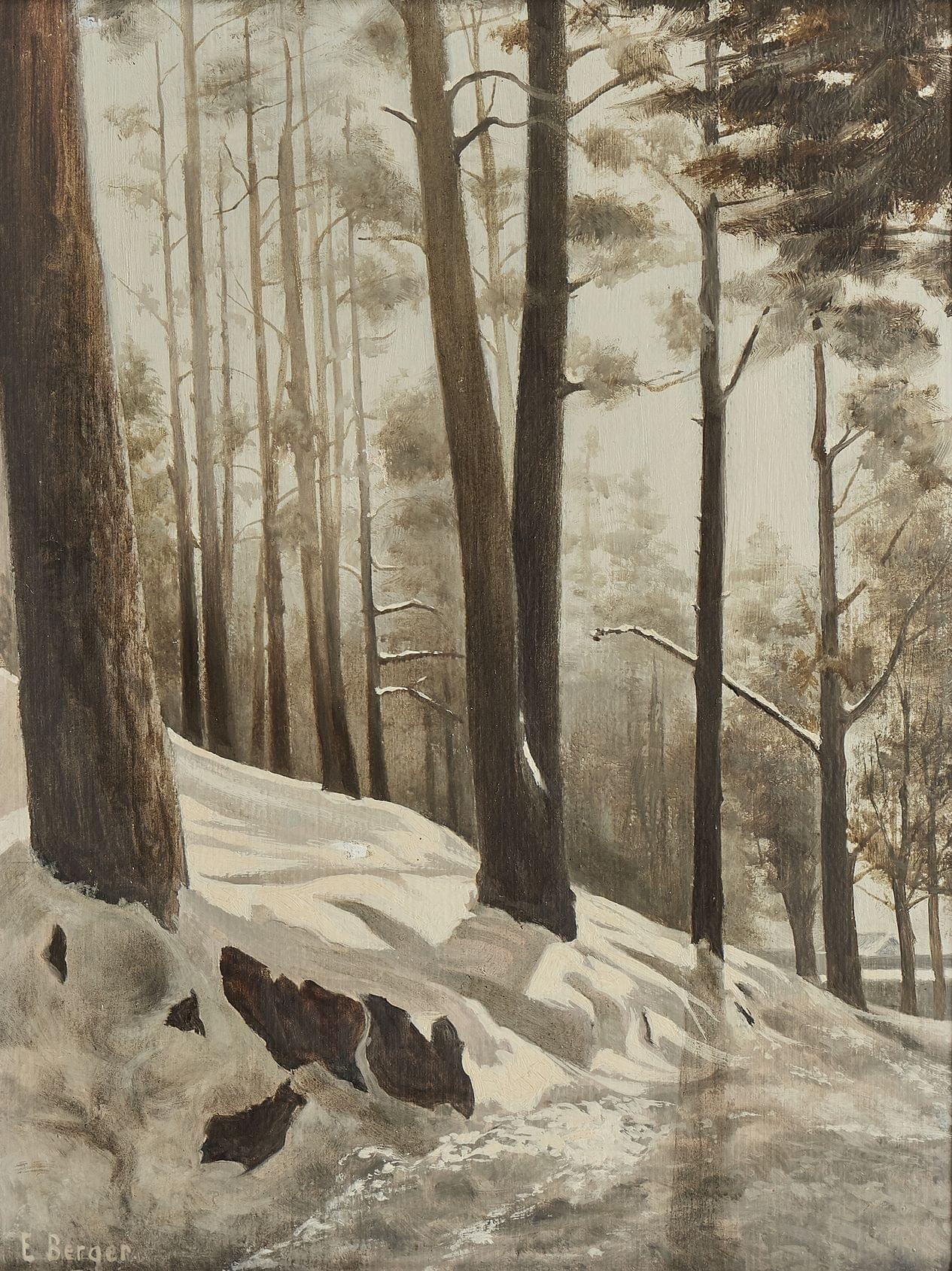Forêt sous la neige, huile sur carton, signée, 30x23 cm