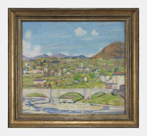 Pont à Berne, huile sur toile, signée et datée 25, 63x70 cm