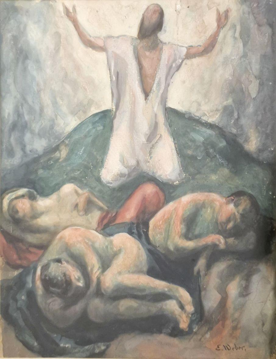 Le Christ dans le jardin des oliviers, aquarelle et gouache sur papier, signée, 32x26 cm