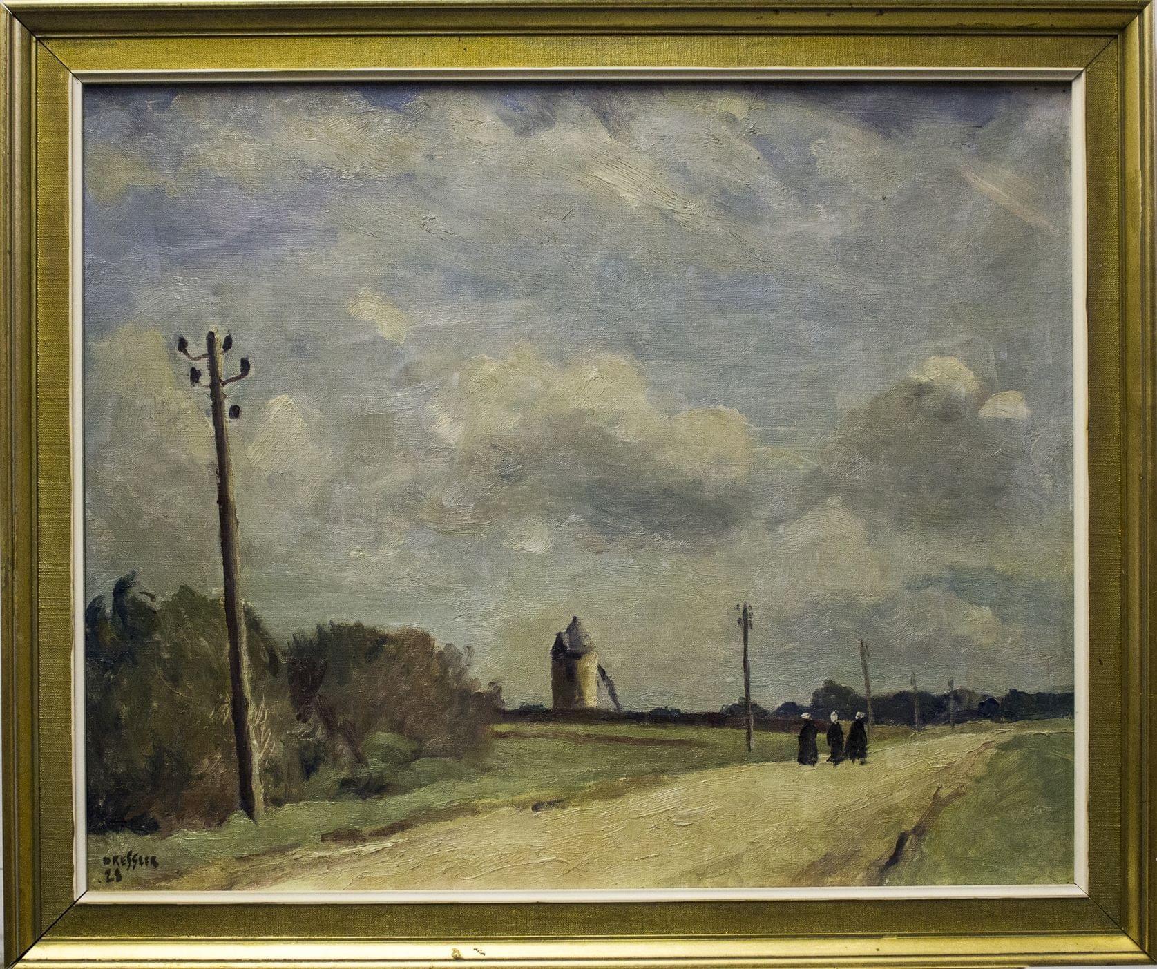 Bretonnes sur un chemin, huile sur toile, signée, 49x60 cm