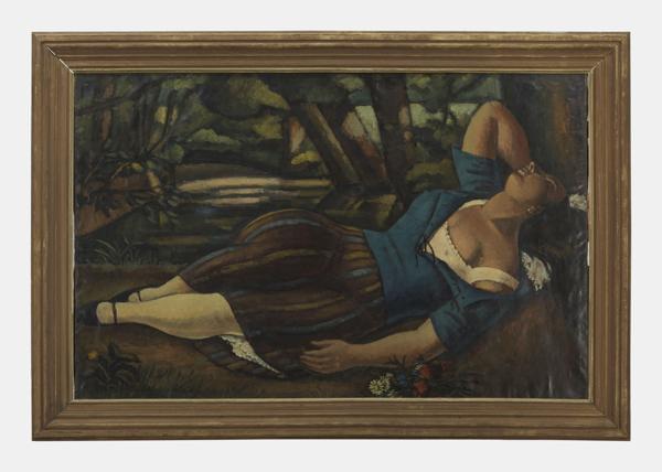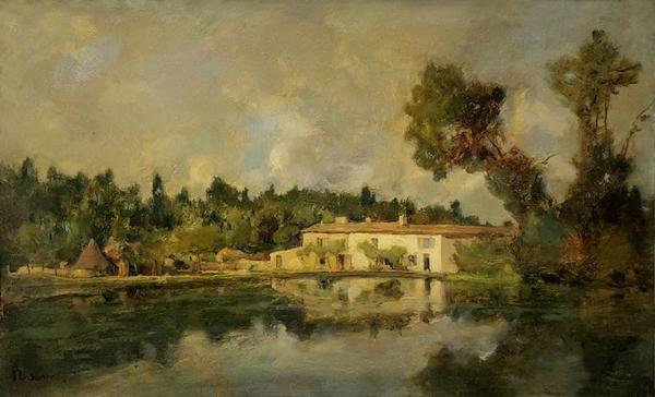 Paysage lacustre, huile sur panneau, 15x24.5 cm