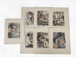 Collection de 7 estampes à sujet érotique, 18x13 cm