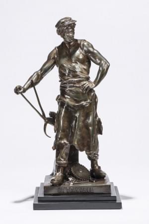 Le forgeron, régule sur socle en marbre, signé, H 56 cm
