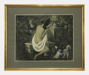 Suzanne et les vieillards , huile sur carton, signée et datée 57, 26x33 cm
