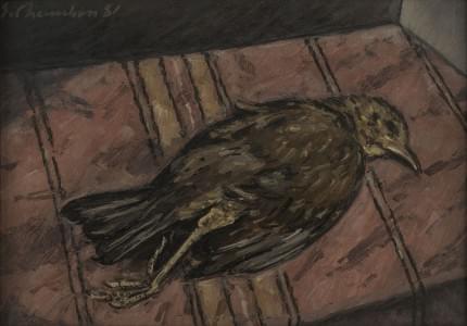 La merlette, huile sur carton, signée et datée 81, 25x36 cm