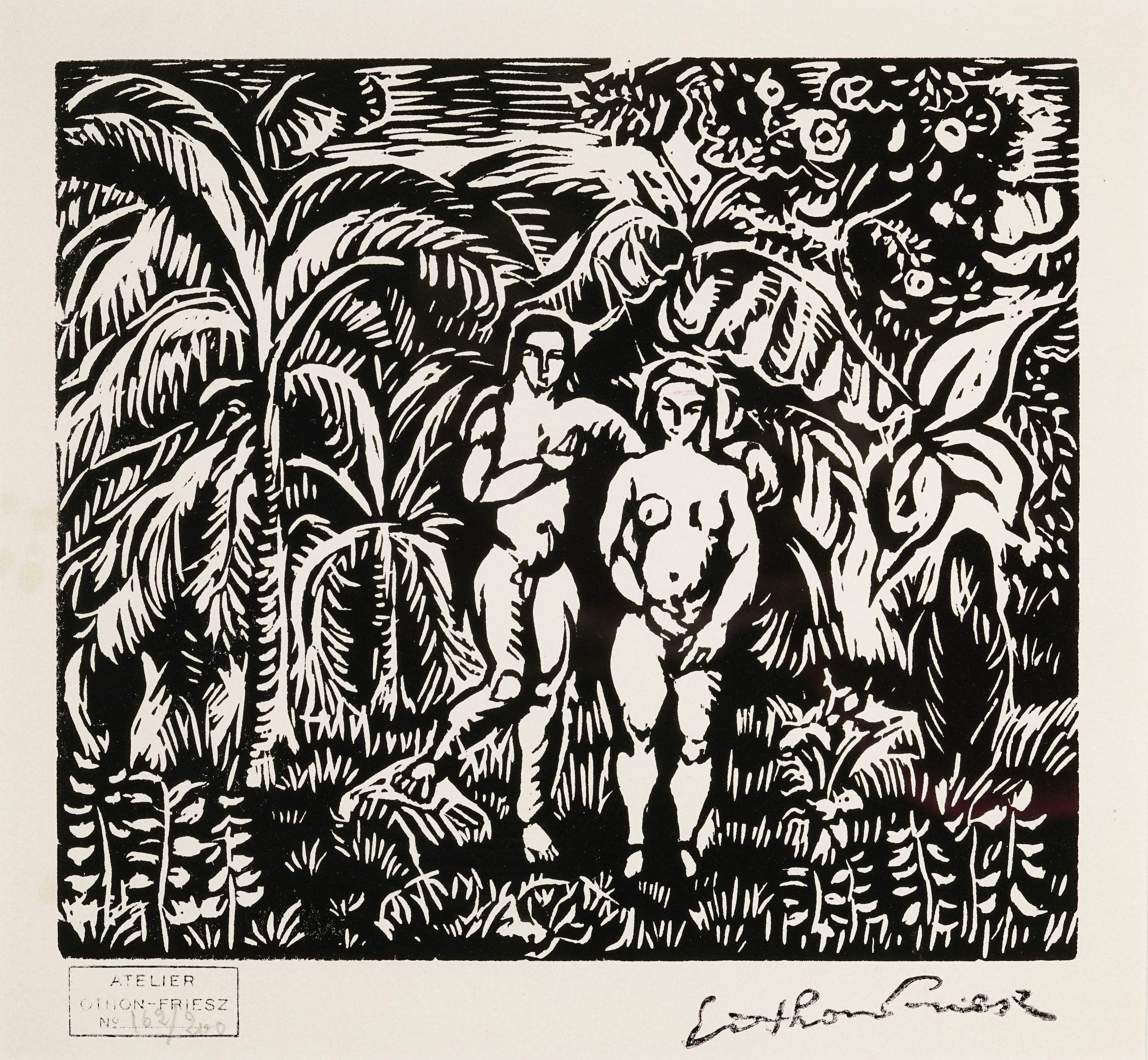 Adam et Eve, bois gravé, signé du cachet d’atelier et numeroté162/200, 24x26 cm