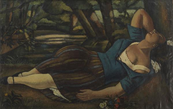 Dormeuse au bord de la Seymaz, huile sur toile, 96x145 cmcm