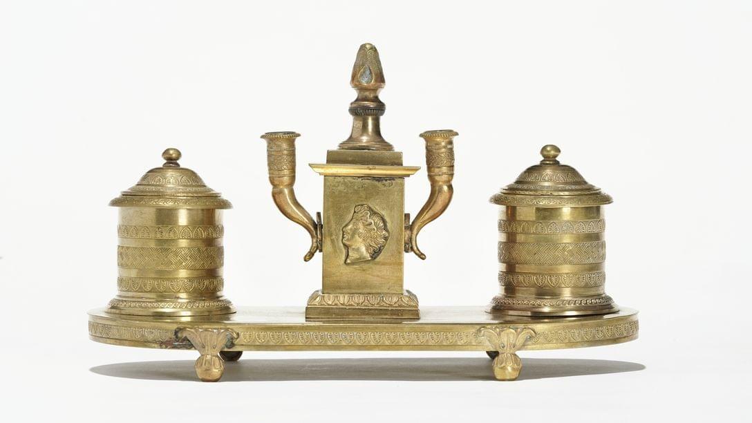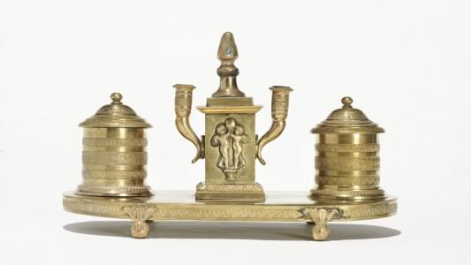 Bronze ciselé et doré à décor de palmettes, L 24 cm