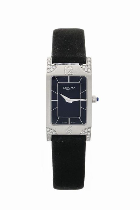 Cadran et index argentés, aiguilles noires, or gris 750, D 10 mm...