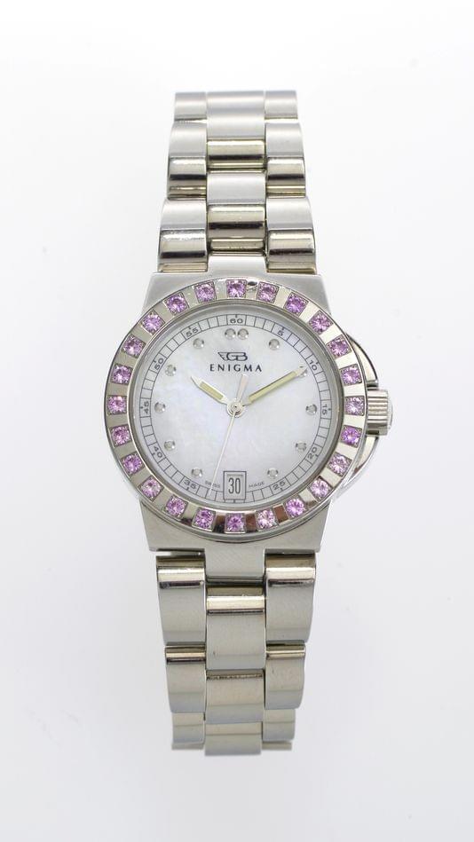 13. Enigma par Gianni Bulgari, montre ronde à quartz sertie de saphirs roses