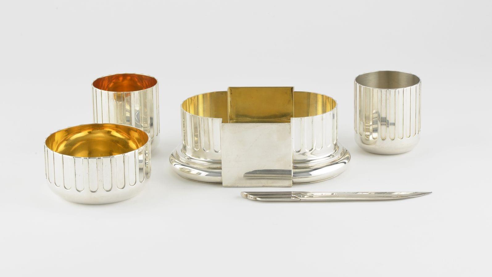 138. Ensemble à motif Colonne par Bulgari composé d'un vide-poche, deux timbales et un bol rond