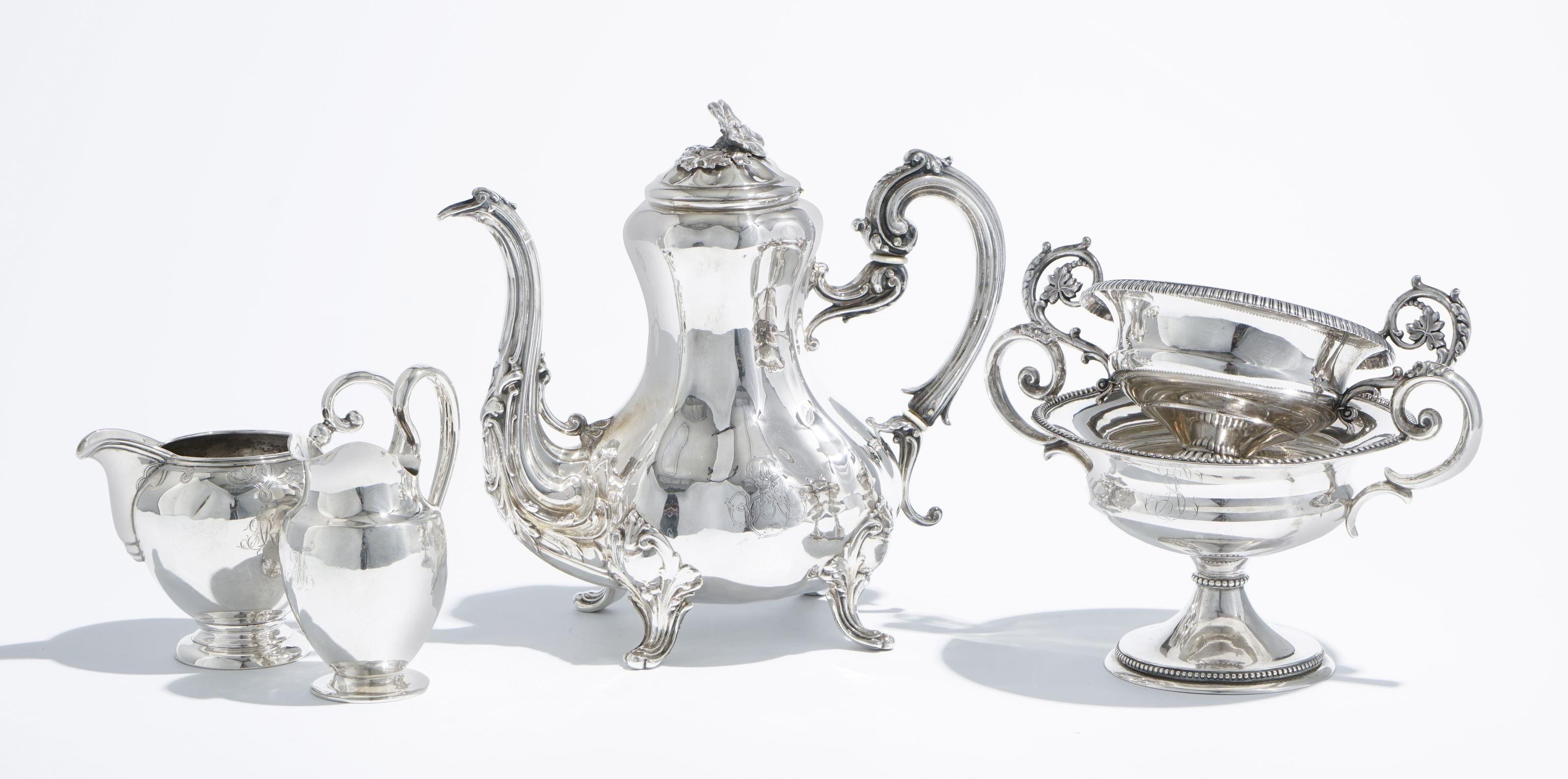 3569. Ensemble composé d'une verseuse, deux drageoirs et deux pots à lait, Rehfuss, Berne et France, XIXe