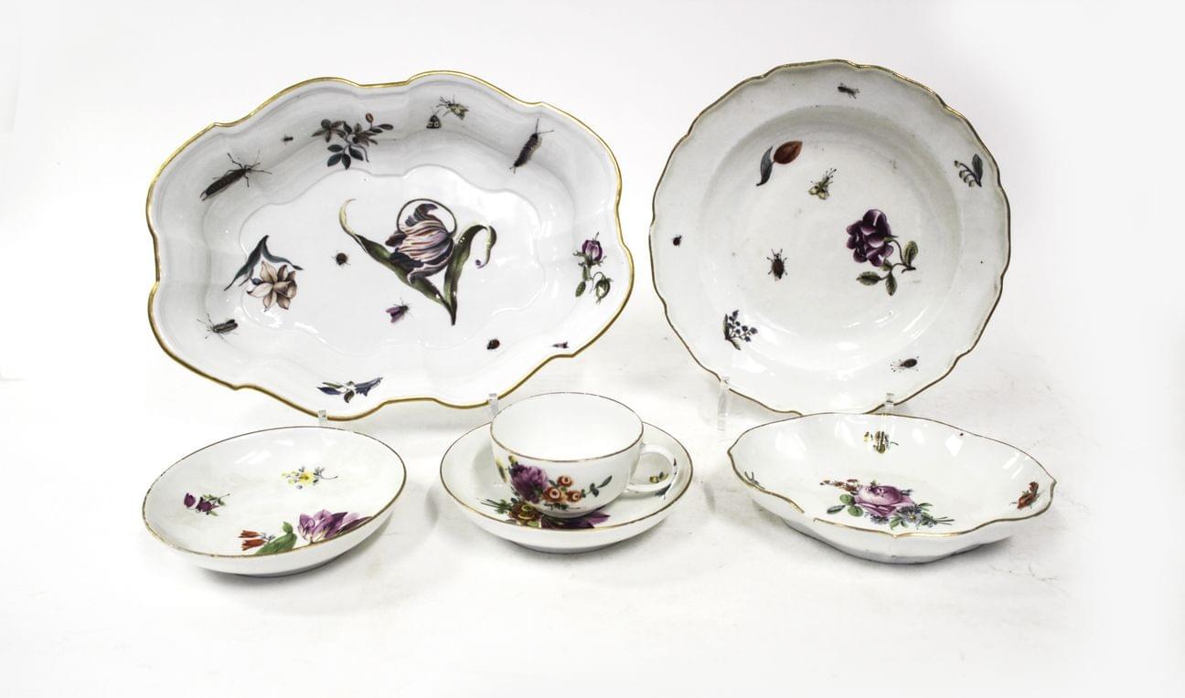 Porcelaine émaillée polychrome à décor de fleurs, animaux dans d...