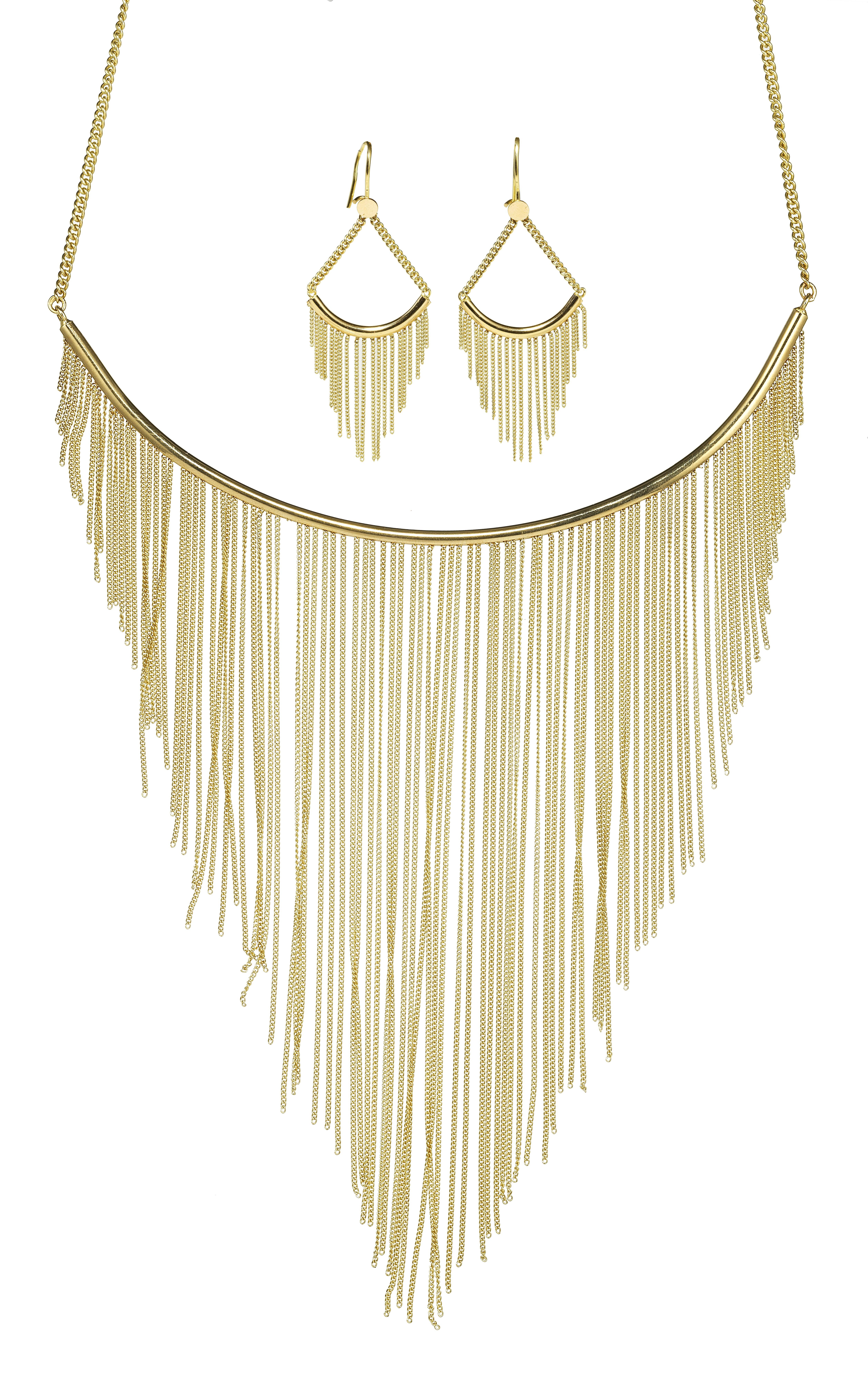 3555. Ensemble d'un collier tour de cou et d'une paire de boucles d'oreilles retenant des fils de maille gourmette