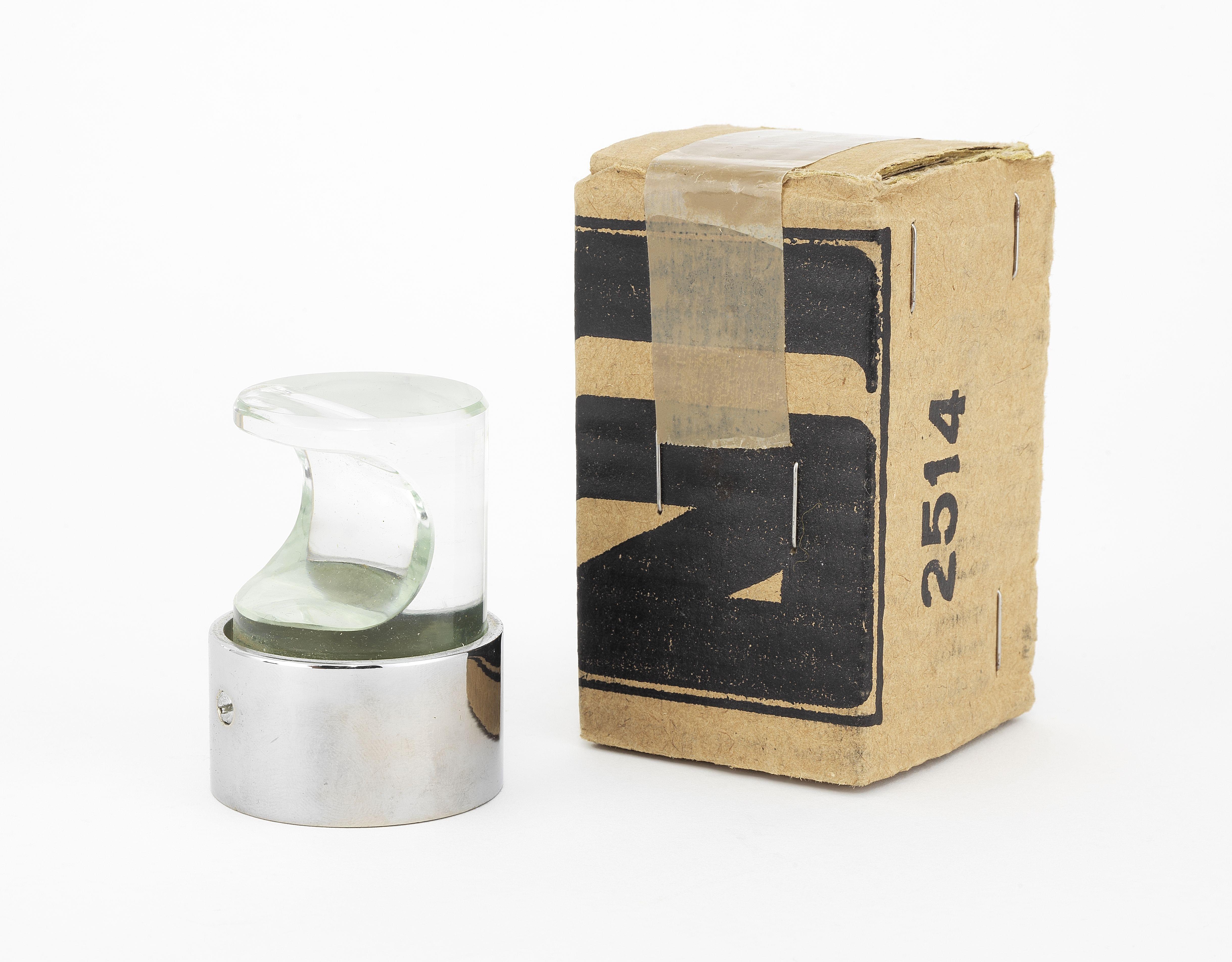 Verre et acier chromé, L 6 cm. Provenance: Collection Prince et Princesse de Savoie. Provenienza: Collezione Principe e Principessa di Savoia