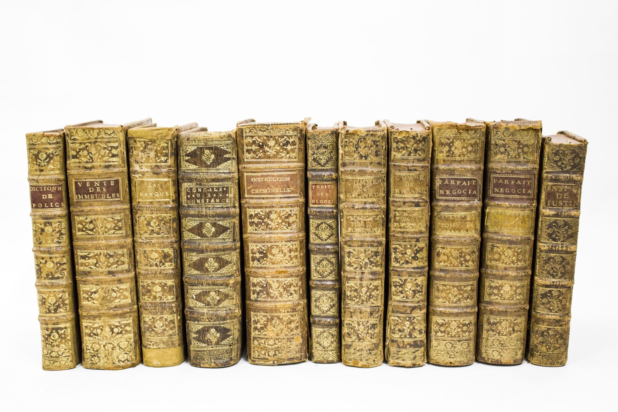 3755. Ensemble de 11 vol. in-4°, veau orné. de droit ou science religieuse, dont :