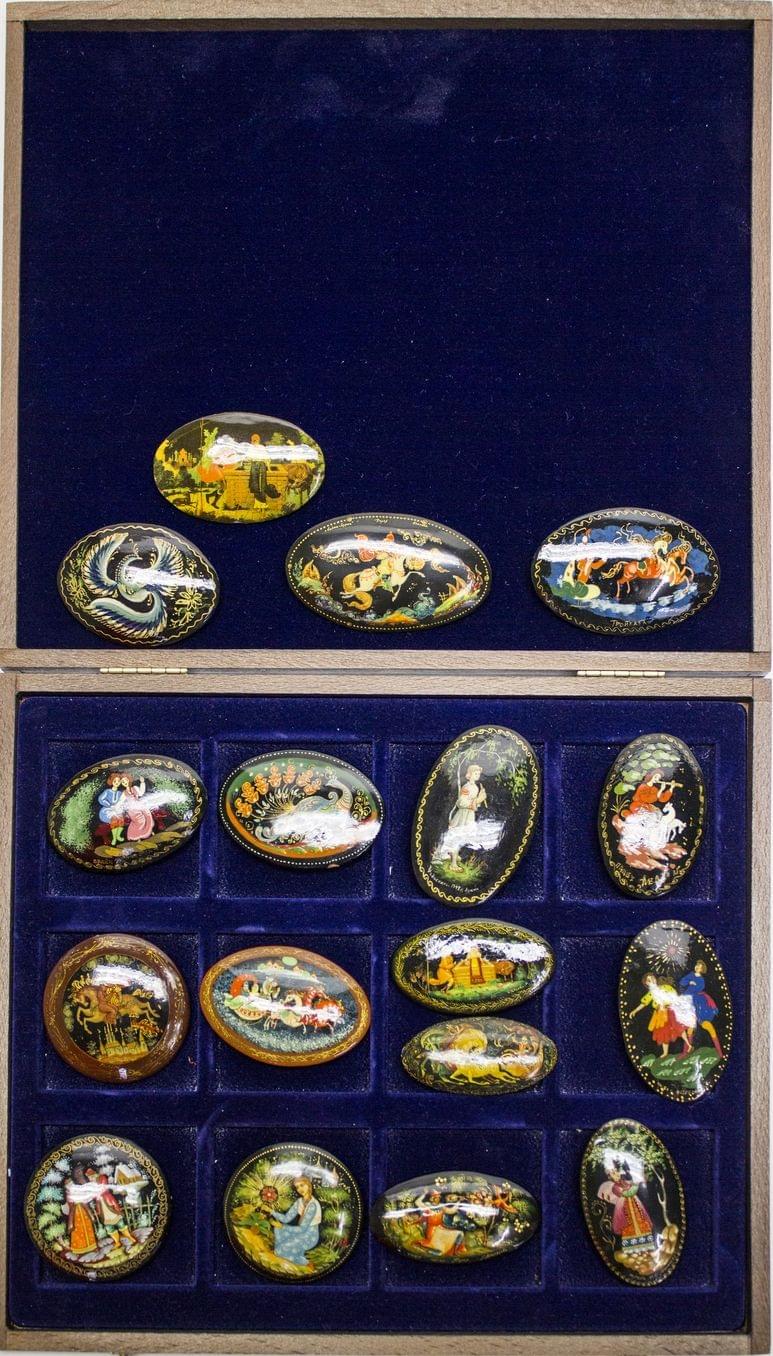 3752. Ensemble de 17 broches médaillon