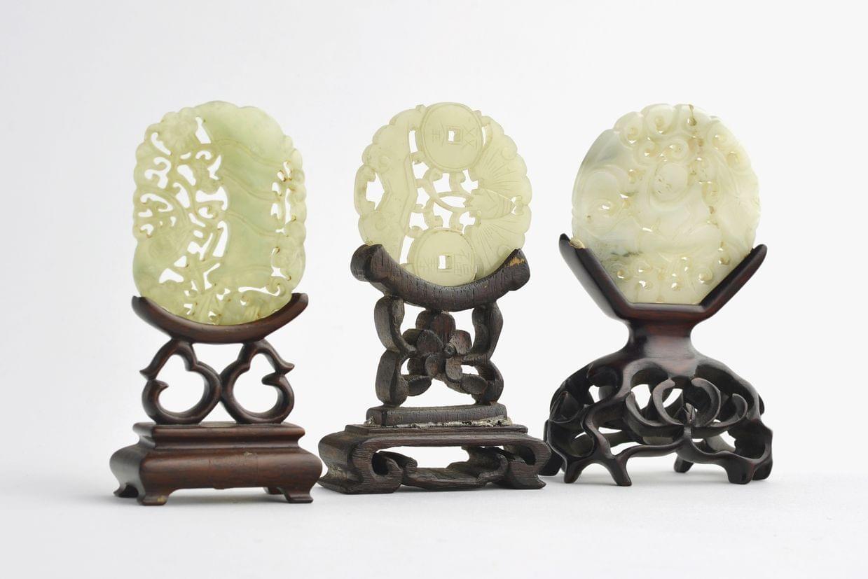 Jade céladon sculpté et ajouré, D 5 et 6 cm