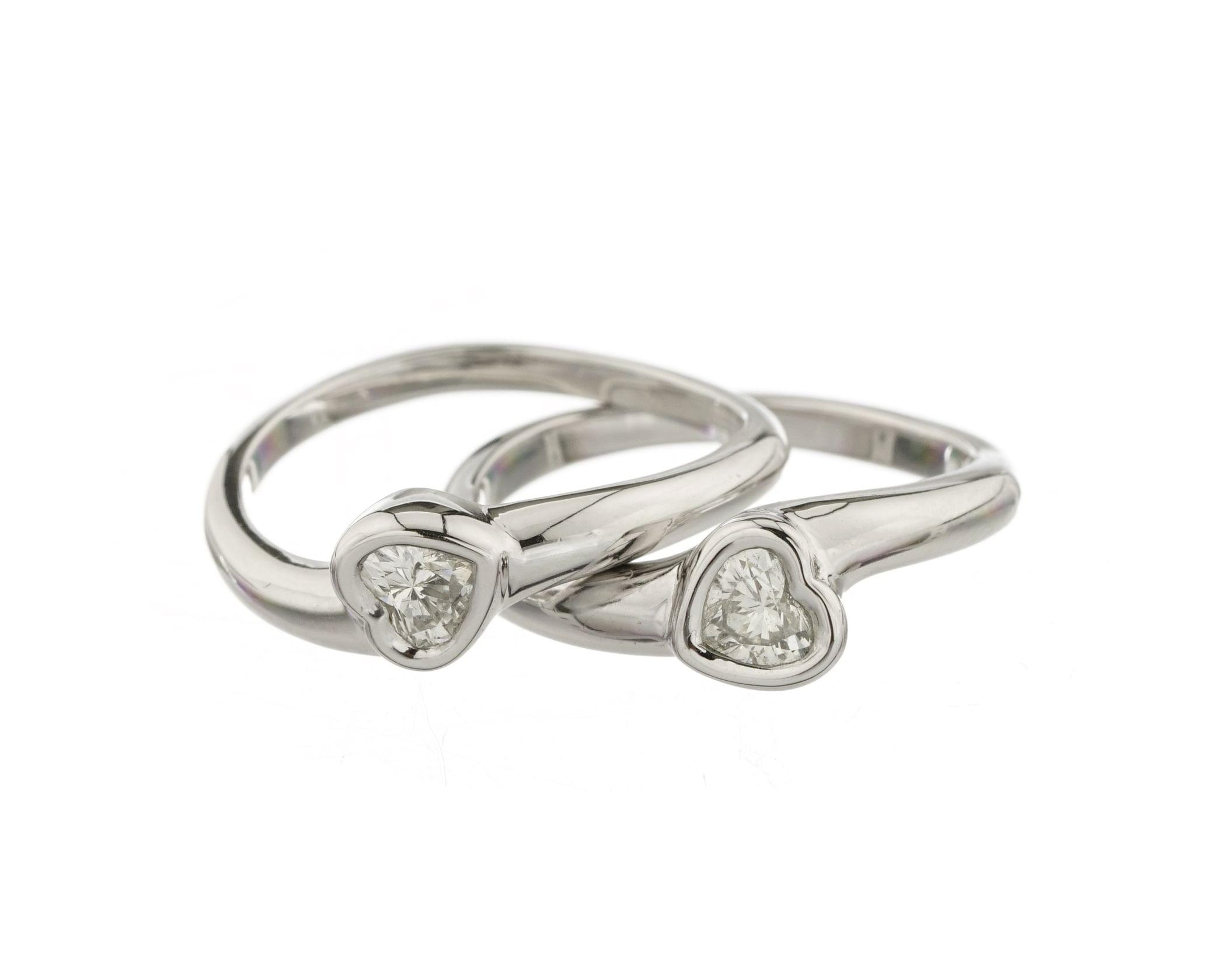 3174. Ensemble de deux bagues serties chacune d'un diamant taille cœur