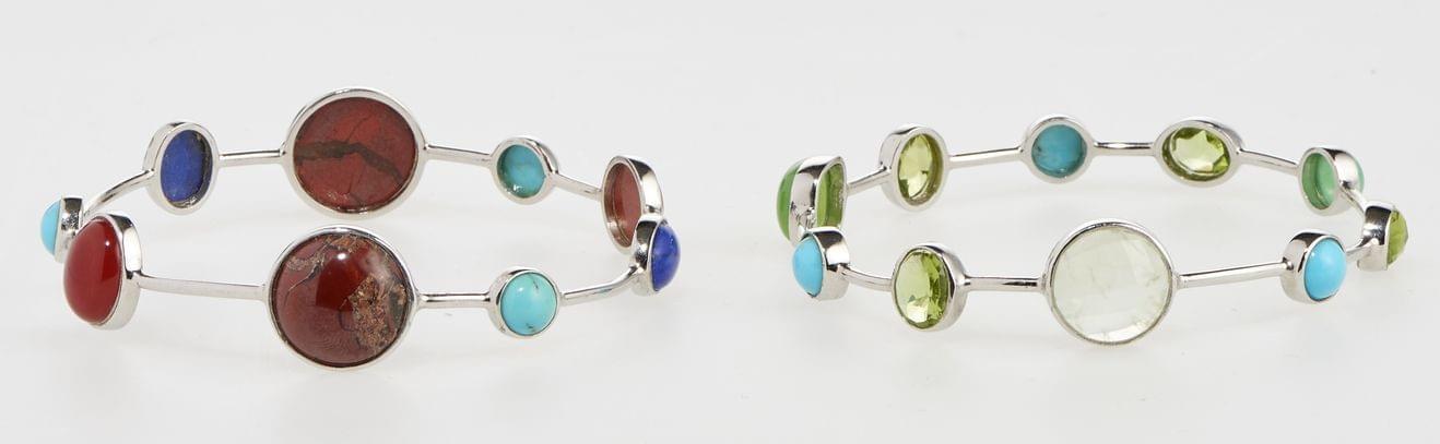 3182. Ensemble de deux bracelets sertis de turquoises, jaspes et autres pierres