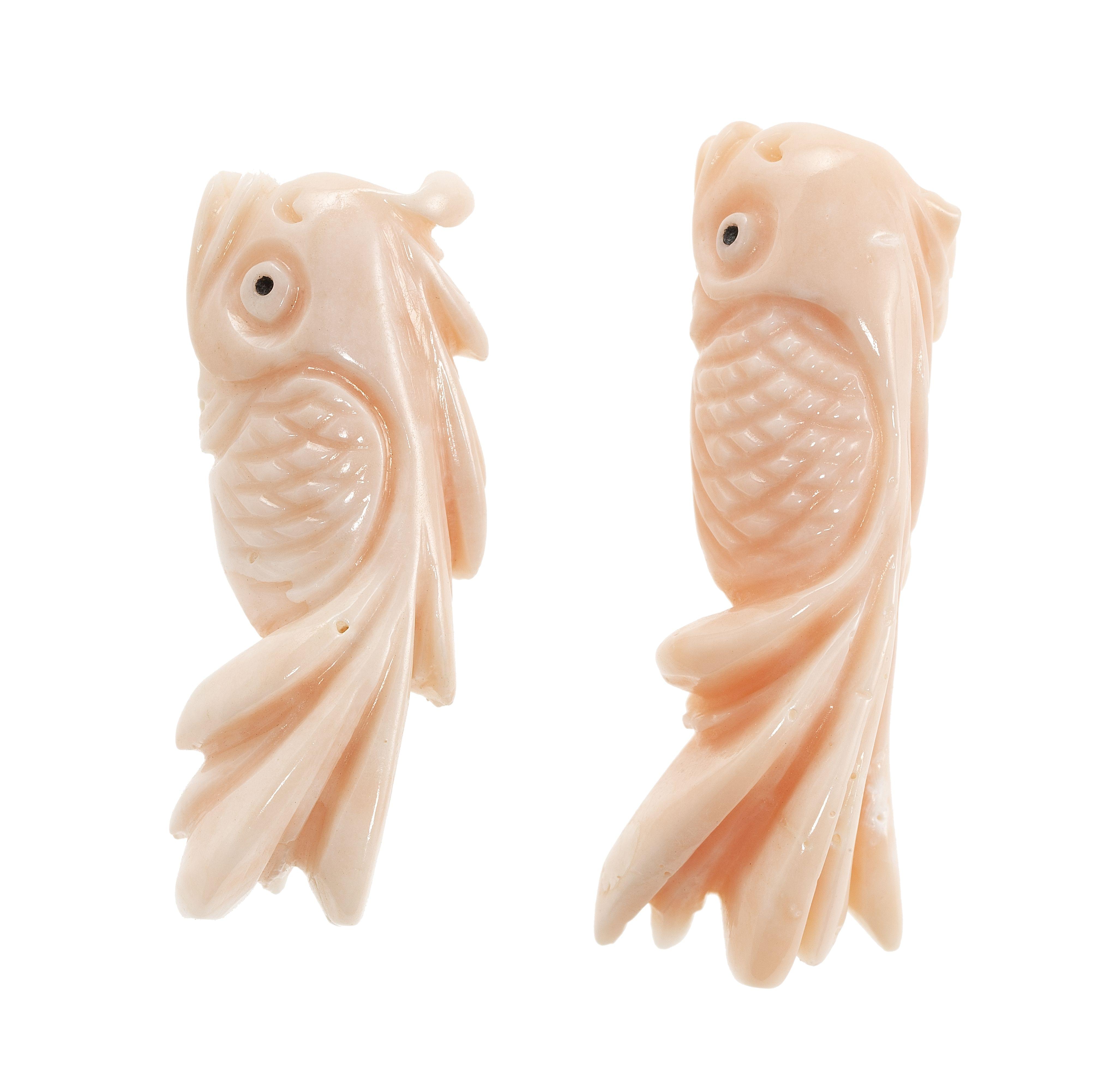 3439. *Ensemble de deux poissons en corail sculpté