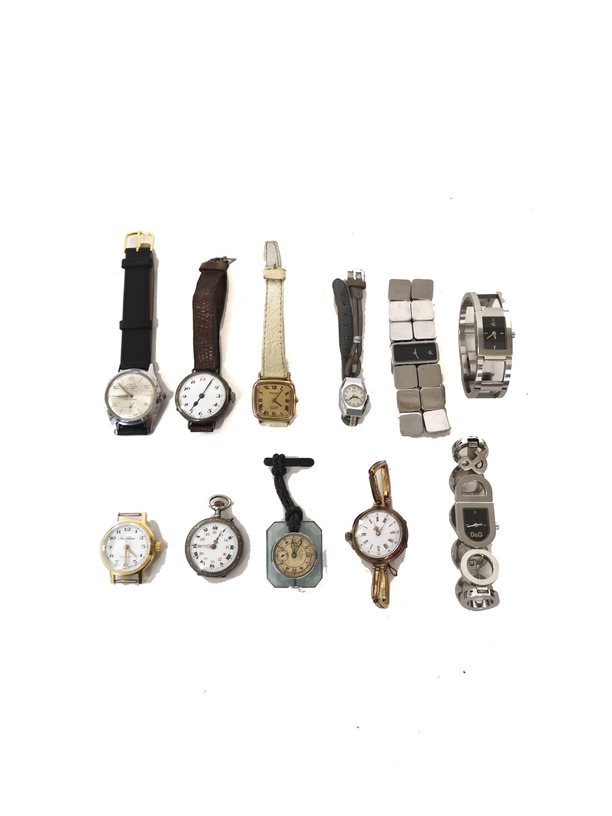 3041. Ensemble de onze montres et montre de poche de dame notamment signées Calvin Klein, Dolce & Gabbana, Tissot et Bader