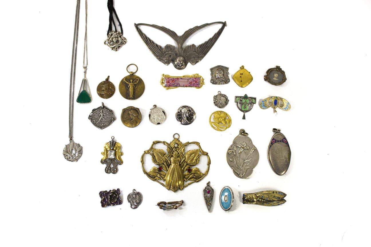 3315. Ensemble de pendentifs, médailles et broches Art nouveau