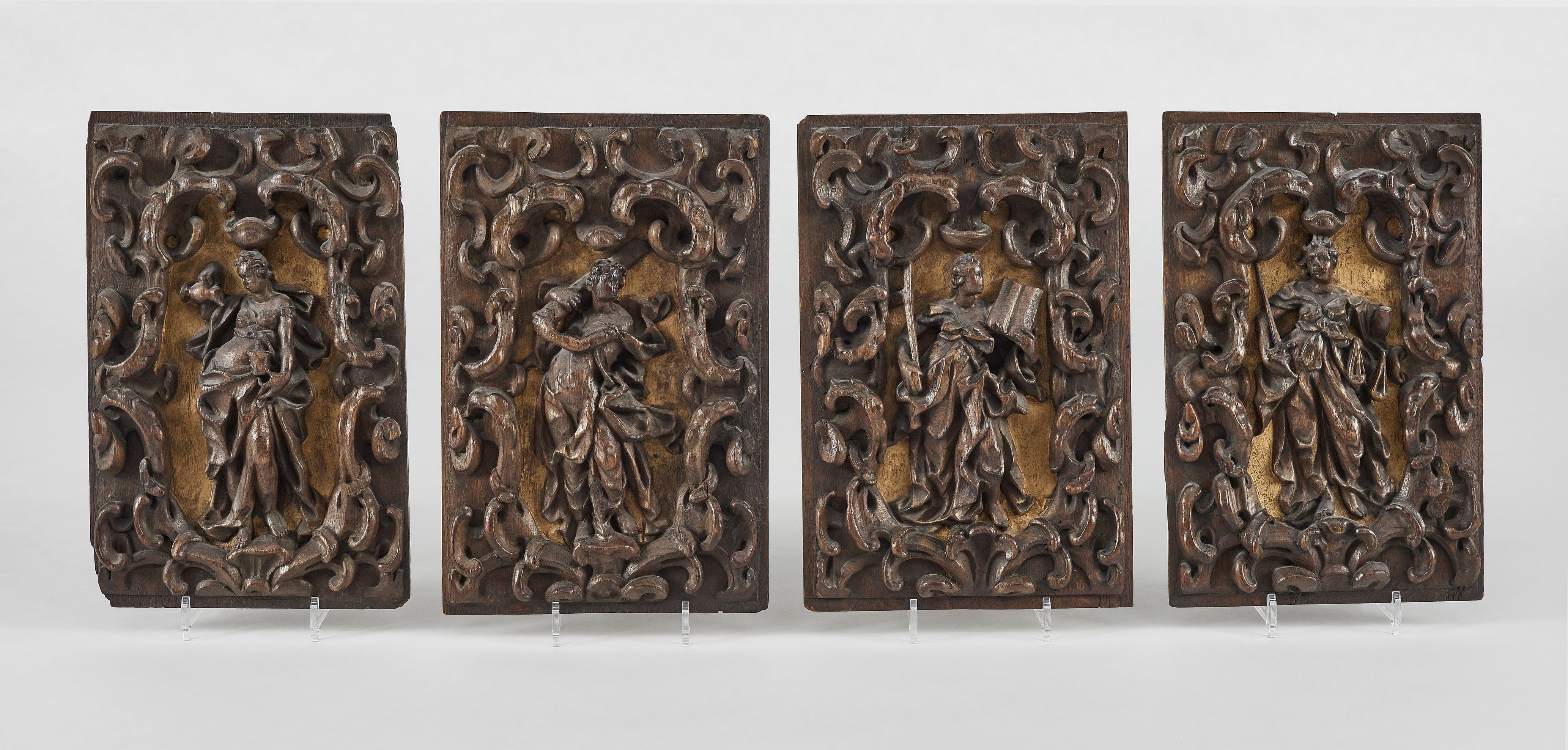 Bois teinté et doré, dim. d'une feuille: 217x46 cm