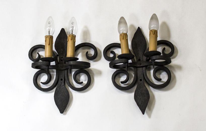 3741. Ensemble de six appliques de style moyenâgeux à deux lumières