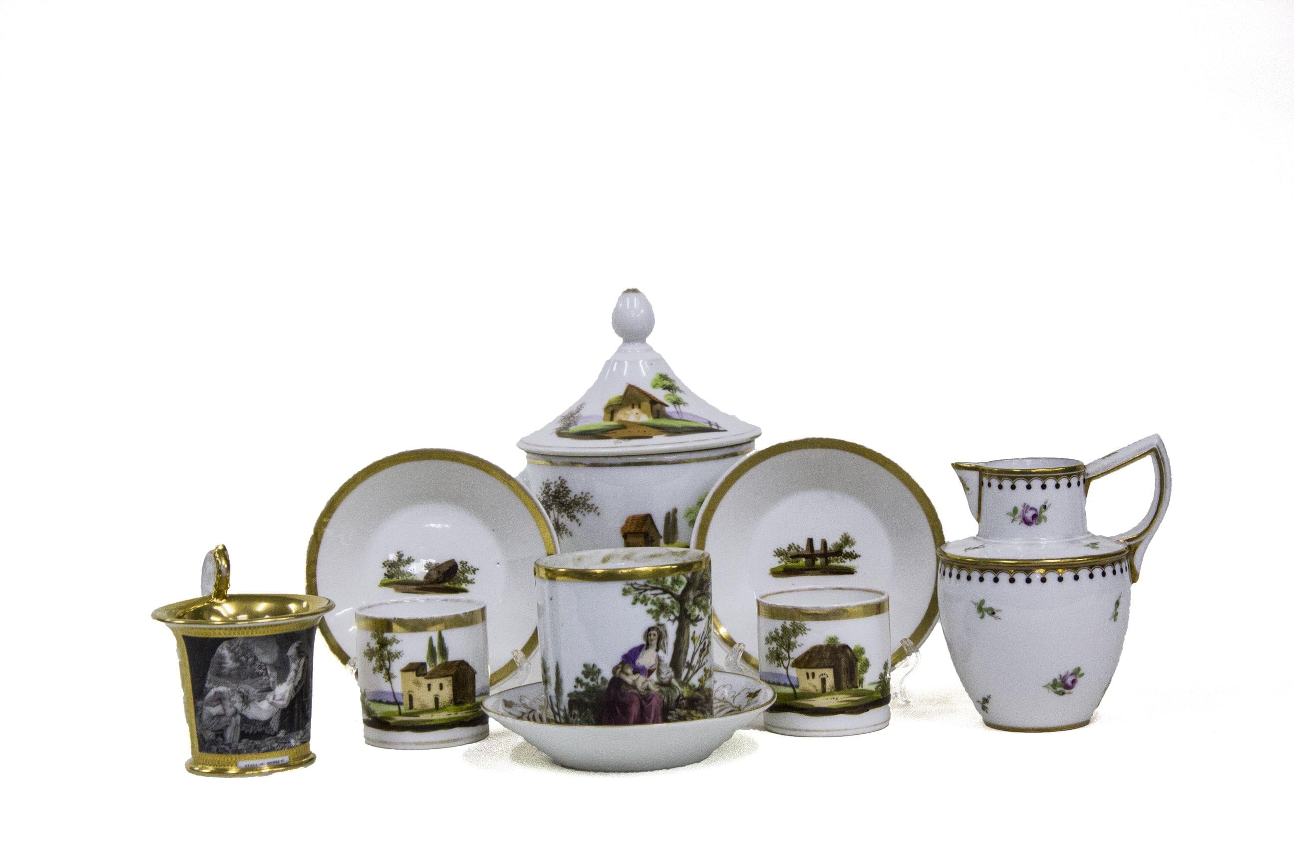 Porcelaine, à décor de paysage et personnage H de 6 à 20 cm