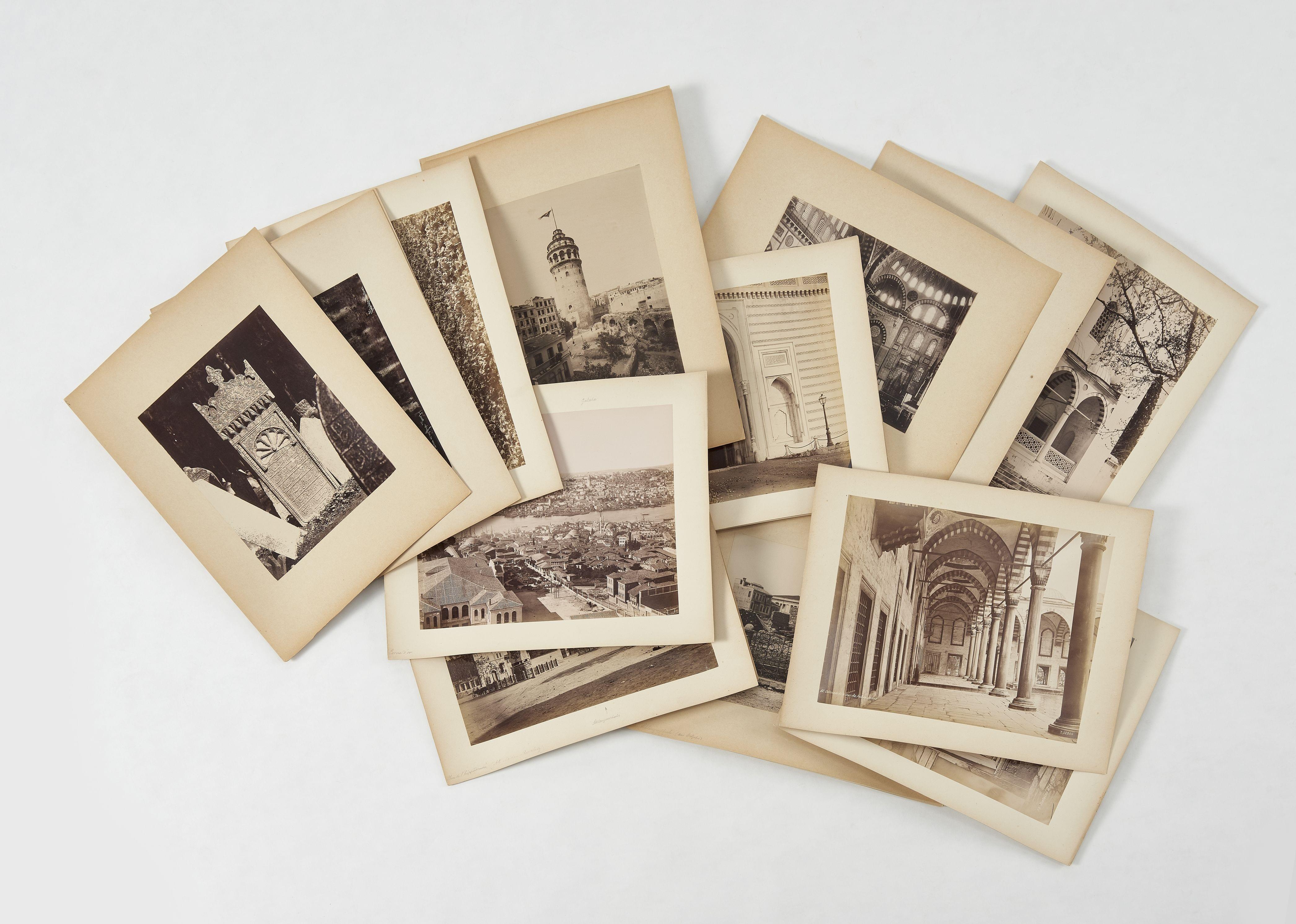 Figurant des vues de Constantinople, intérieurs de mosquées et divers, signées Sebah & Joaillier, environ 27x21 cm