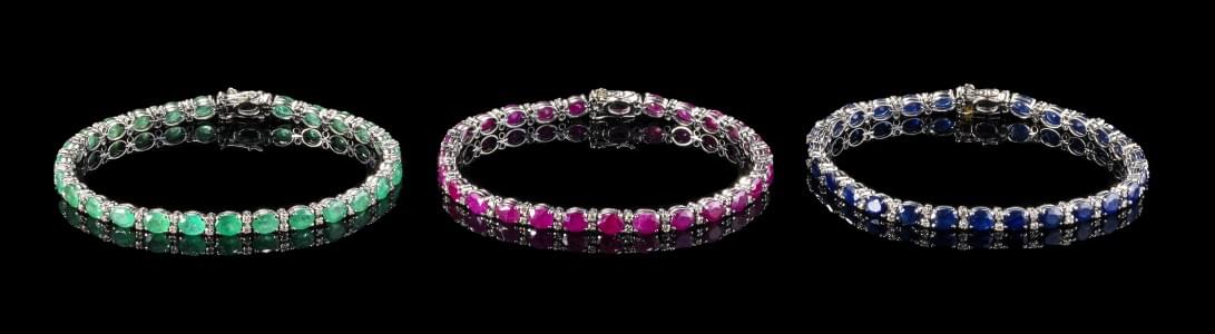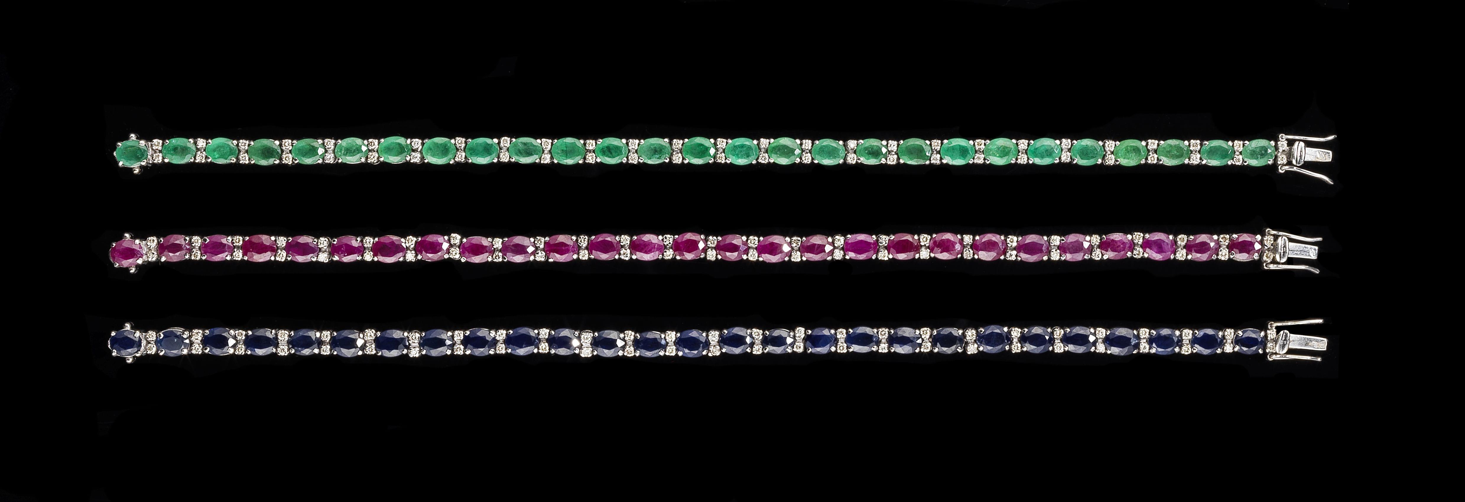 Retenant des saphirs taille poire (total 3 ct) entourés de diama...