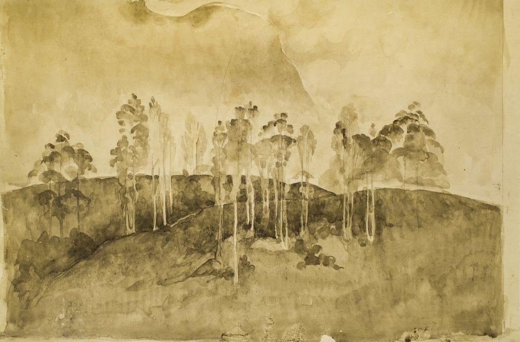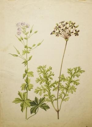 Deux de Louis Dufaux (1802-1884) représentant des plantes et un paysage de l'école suisse du XIXe s, aquarelle et lavis d'encre, 43x60 cm et 26,5x40cm