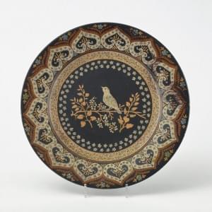 Terre vernissée à décor incisé de fleurs, centre peint de bords...