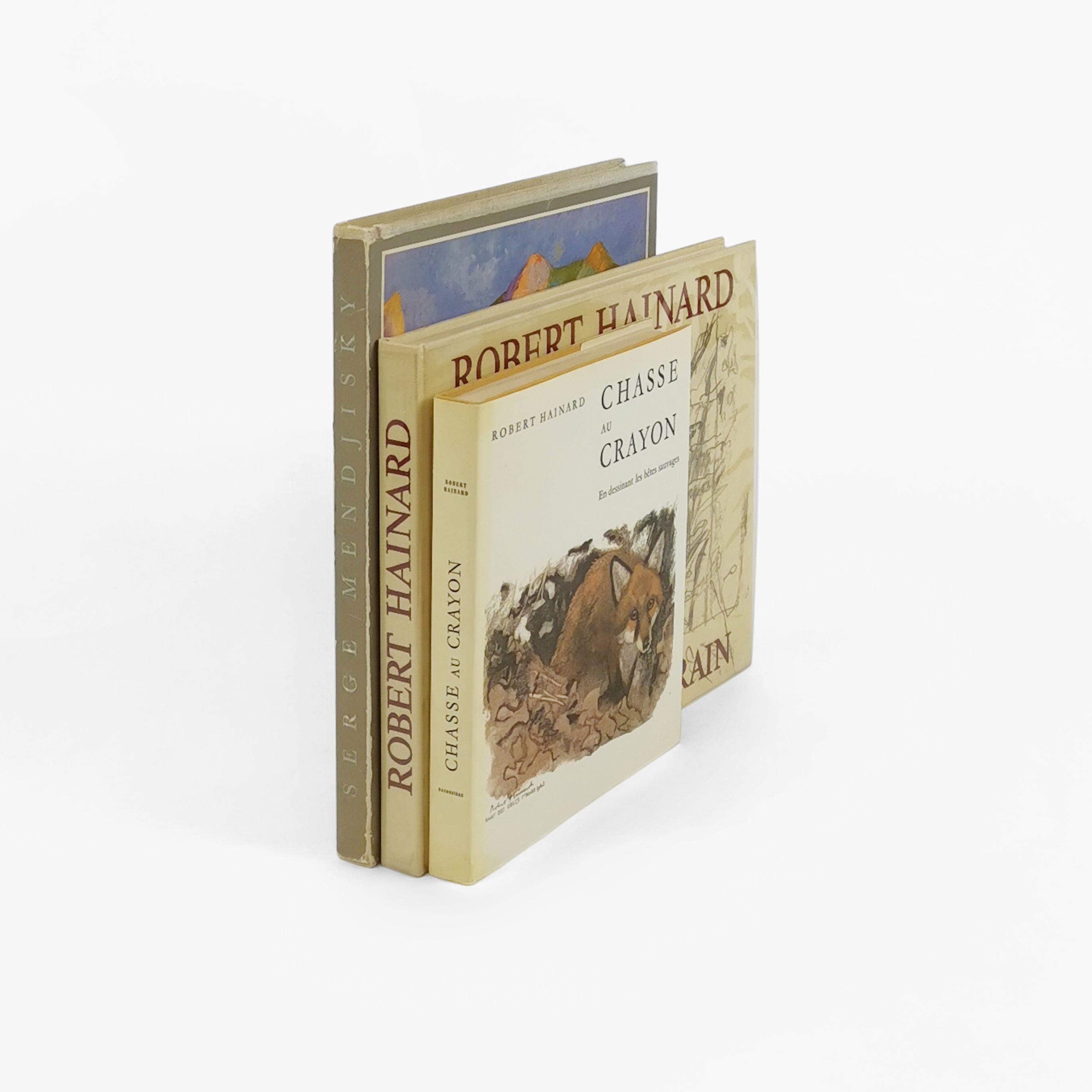 - HAINARD (Robert) : Chasse au crayon. Neuchâtel, La Baconnière, 1969 ; in 8° carré broché, jaquette illustrée. Envoi de l’auteur.- HAINARD (Robert) : Croquis de Terrain. Lausanne, Payot, 1975 ; in 8° oblong broché, jaquette. Envoi de l’auteur. Joint : MENDJISKY (Serge), 1925-2017. Textes rédigés par André Maurois, Marcel Pagnol, Claude-Roger Marx et Raymond Charmet. Chez l’artiste, 1963 ; in 4° broché, jaquette illustrée. Exemplaire enrichi d’une dédicace et de deux beaux dessins de l'artiste, signés.