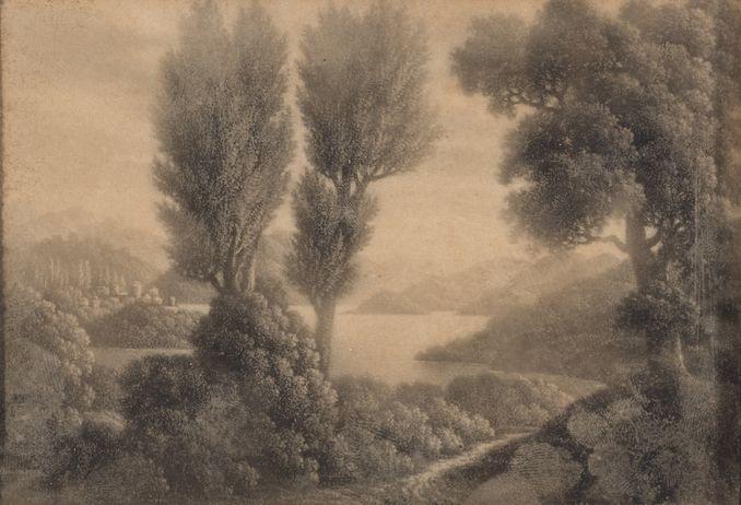 Décor de tragédie, aquarelle et encre sur papier monogrammée tit...
