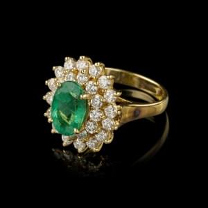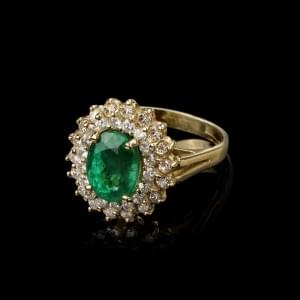 730. Bague sertie d'une émeraude taille ovale (env. 2 ct) dans un dou...