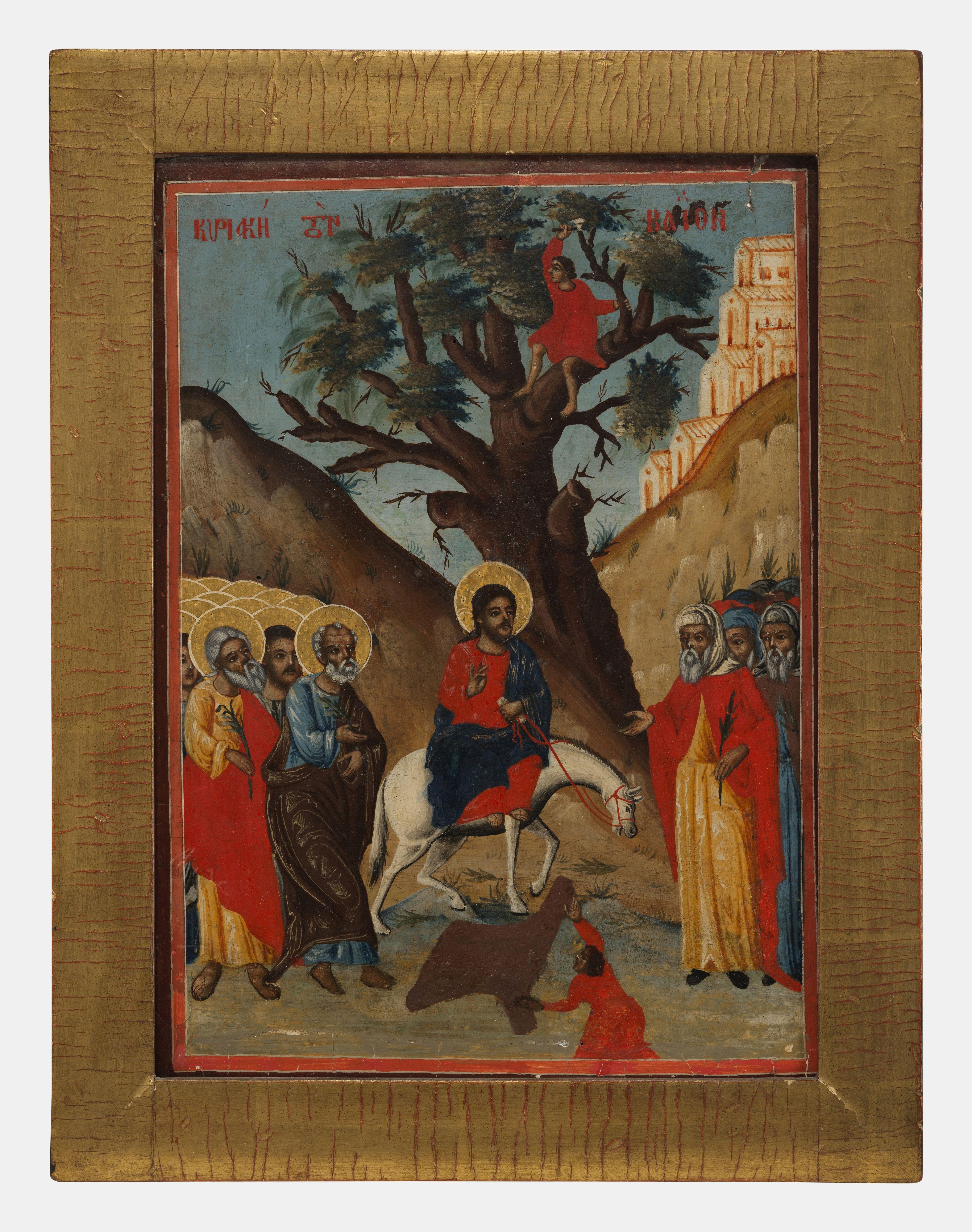 Icône, tempera sur panneau et oklade en laiton, 22x18 cm