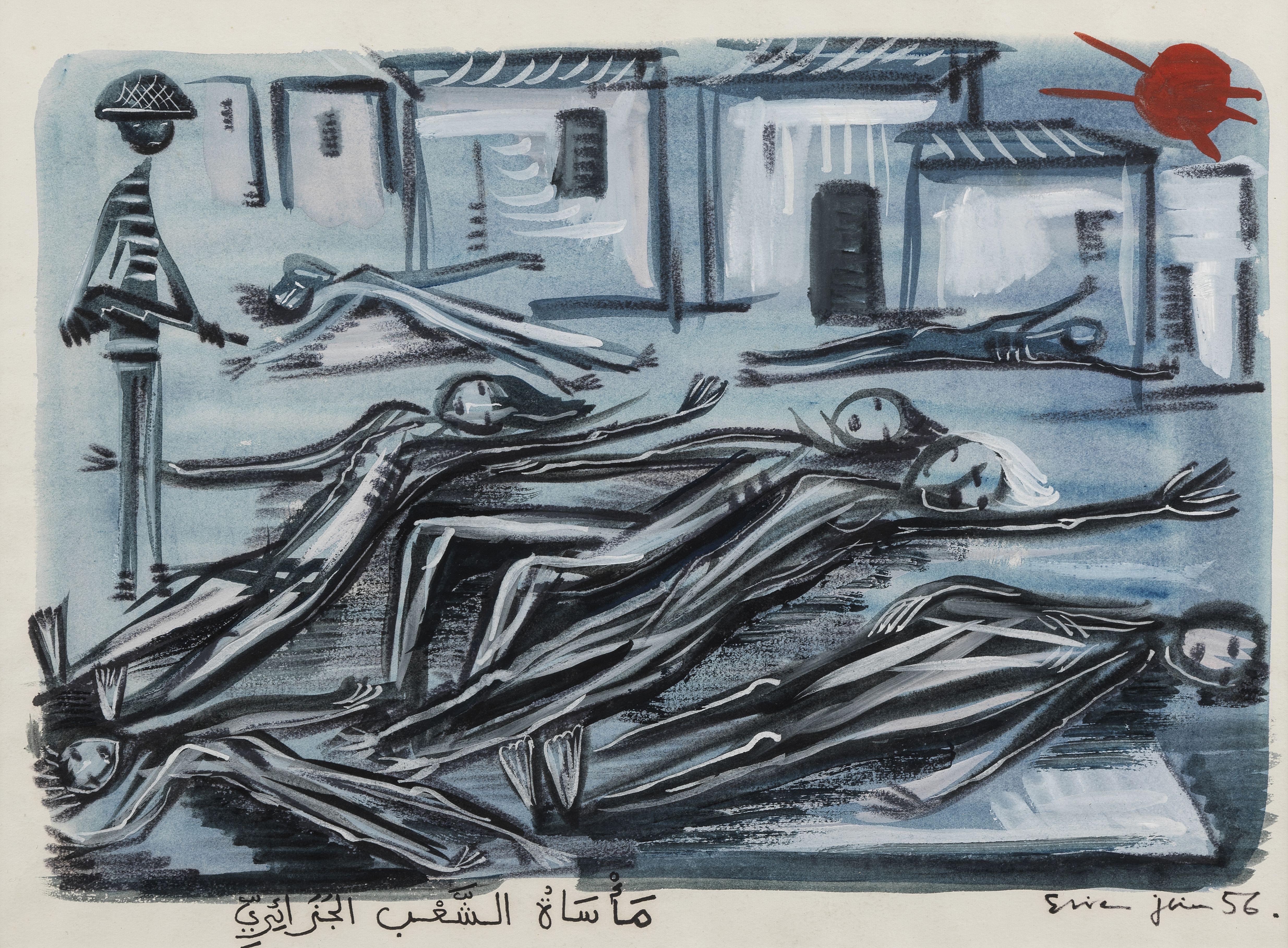 Episode de la guerre d'Algérie, aquarelle sur papier, signée et datée 56, 30x40 cm