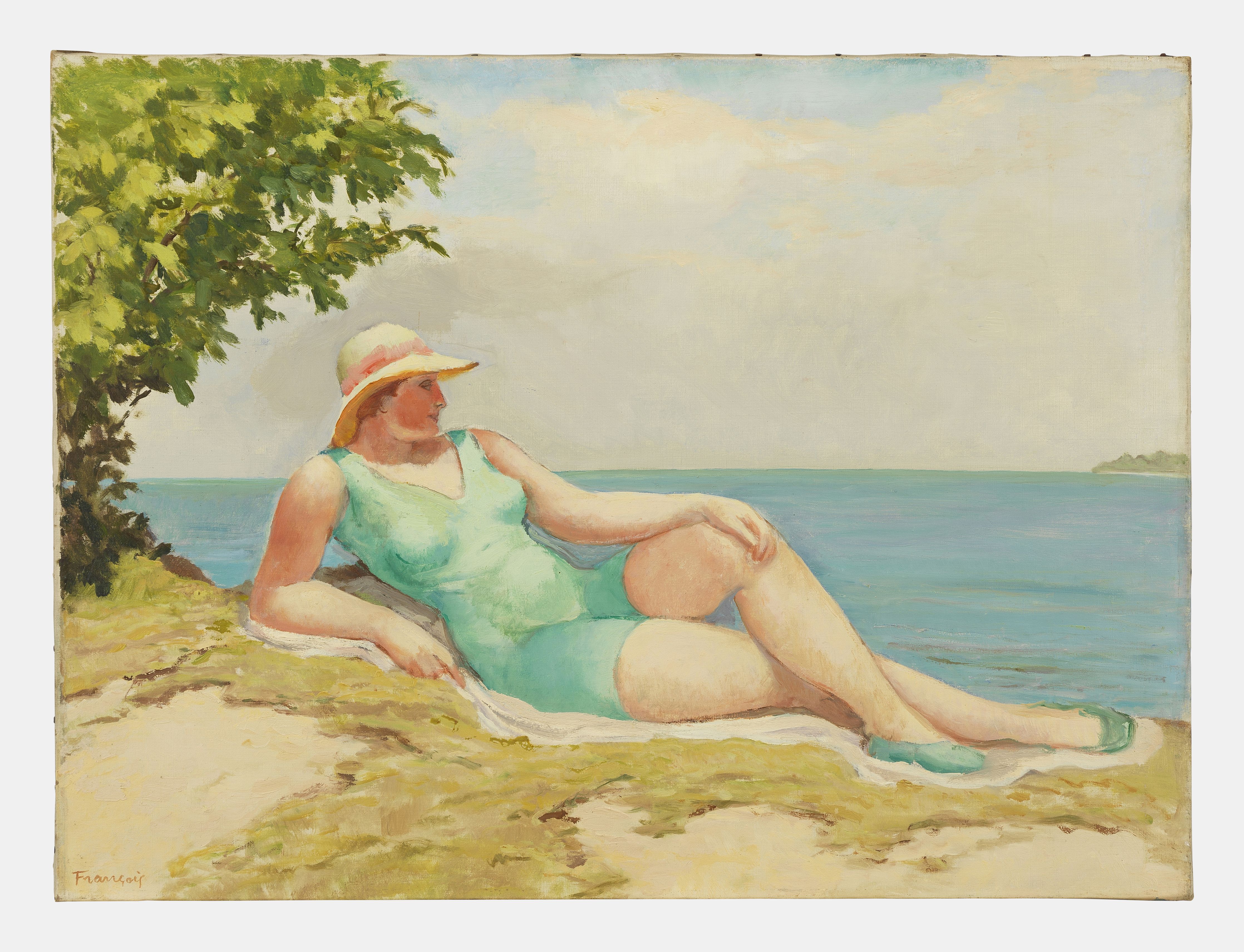 La baigneuse, huile sur toile, signée, 90x70 cm