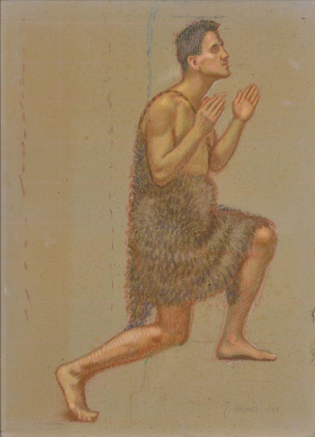 Etude de Saint Jean Baptiste, pastel sur papier signé et daté 1921, 71 x 52 cm