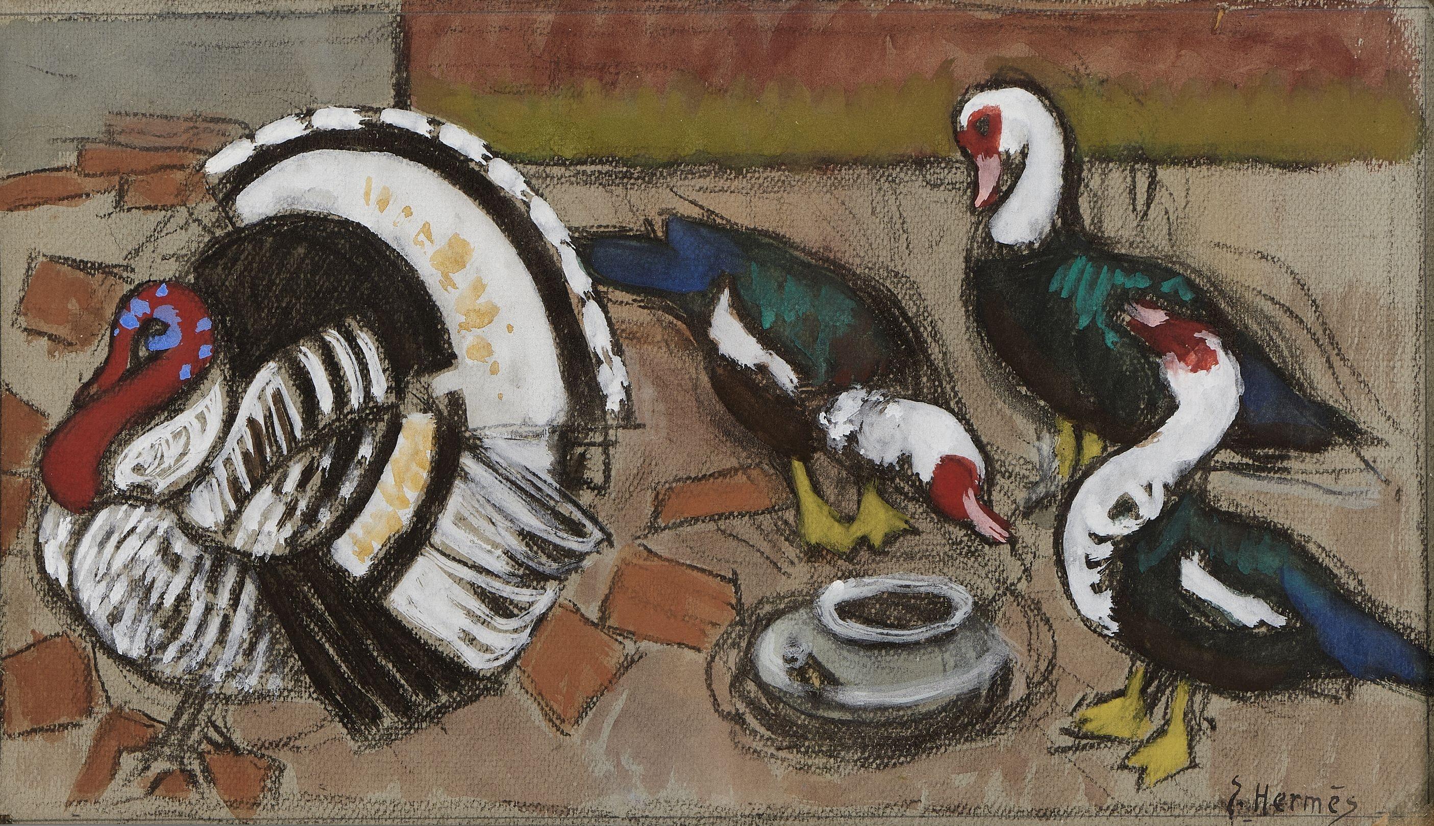 Scène de vendanges, gouache et fusain sur papier, signé et situé...