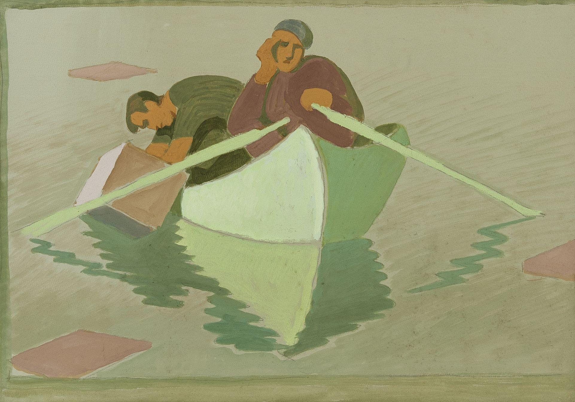 Pêcheurs, gouache et mine de plomb sur papier, non signé, 33x48 cm